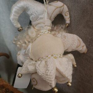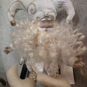 L8 Whimsiical Santa pose or hang Lush Velour, Satin & Gold w/bells & gold balls