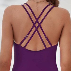 LA BLANCA Island Goddess Orchid Purple Strappy One-Piece Swimsuit Size 8 EUC Hygenic This gorgeous one-piece swimsuit from La Blanca offers up plenty glamour-girl style with ia bust-enhancing v neckline. All over shirring and fully lined with built in padded cups, which offers up a slimming fit. The criss cross multi strap design looks fantastic from the back.