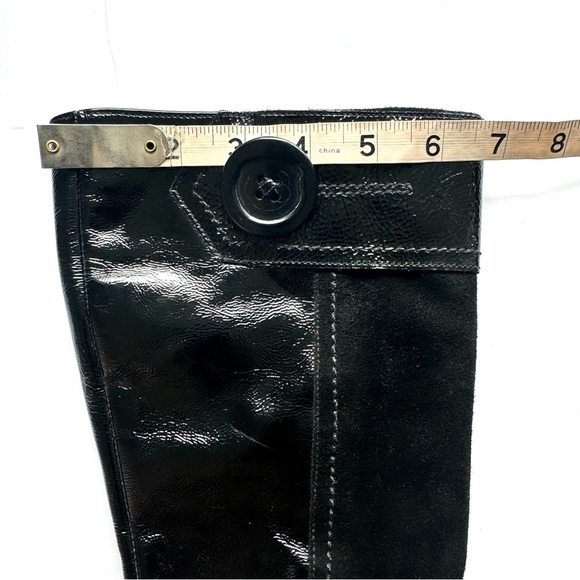 Elevate your style with the iconic La Canadienne Black Tall Boot, a vintage Victorian-style piece that exudes timeless elegance. Crafted for women in size 6 1/2 M, these boots feature a combination of patent leather and suede, offering a luxurious feel.