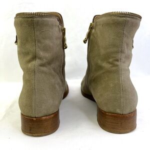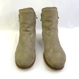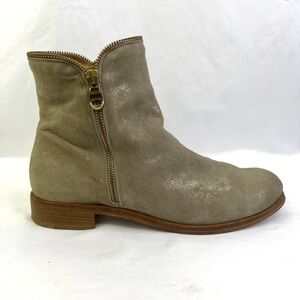 LA CANADIENNE SHIMMER TAUPE ANKLE BOOT SUEDE LEATHER BOOTS GOLD ZIPPER ACCENT 41
