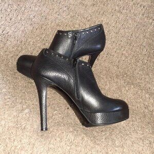 LA CANADIENNE-Black Leather w/Silver Studded Booties/Shooties-Sz 39-Near Mint