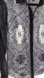 La Classe Couture sheer blouse has a black back and sleeves and a white design on black on the front. Bust darts, back pleat, button front and cuffs. 100% polyester.