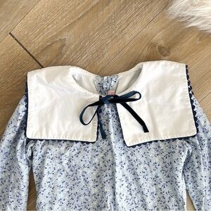 Epitomising vintage romanticism in a way few can replicate, slow fashion brand La Coqueta presents the Laura silhouette, a drop waist long-sleeve dress decorated with a hand-drawn vintage floral print. Crafted from lightweight and silky material in rich shades of sage green, burnt orange and tan, it features long sleeves and a statement sailor bib collar trimmed in brown velvet. Fully lined with pure cotton, it has a timeless, effortlessly feminine shape with brown trims on the sleeves and a self-tie bow at the neck, and mother of pearl buttons to fasten at the back. An heirloom dress that can be passed down to future generations.