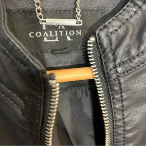 LA Coalition Faux Black Leather Biker Jacket with Ribbed Accents Large