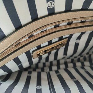 The satchel/top handle bag features a zip and snap closure, with double handles and a 14-inch handle drop for easy carrying. Inside, the leather-lined bag has a spacious compartment for all your essentials, with no personalization options available. Ideal for travel, casual outings, or workwear, this large bag has dimensions of 13" width, 10" height, and 5" depth. Elevate your style with this elegant Italian-themed bag.