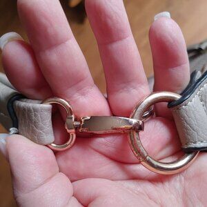 Indulge in the luxurious Italian design of this LA DIVA women's hand bag. The beige distressed leather exterior is accented with brass hardware and buckle accents, making it a stylish accessory for any occasion.