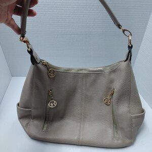 LA DIVA Women's Italian Design Beige Hand Bag Hobo Satchel Purse Zippers