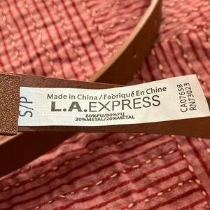 AI description: Stylish L.A. Express belt in brown with a metallic buckle. Perfect for any outfit.
