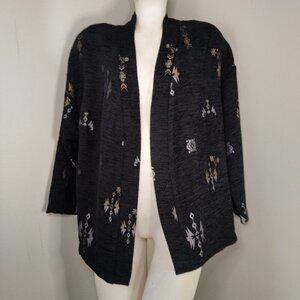 Textured LA FEE MARABOUTEE Open Front Jacket Silver Bronze Stitched design