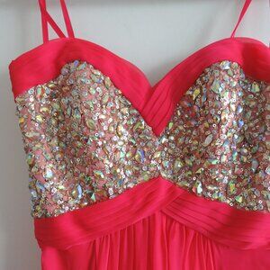LA FEMME 18733 Beaded Bodice Chiffon Strapless Maxi Prom Dress Watermelon 4 NWT