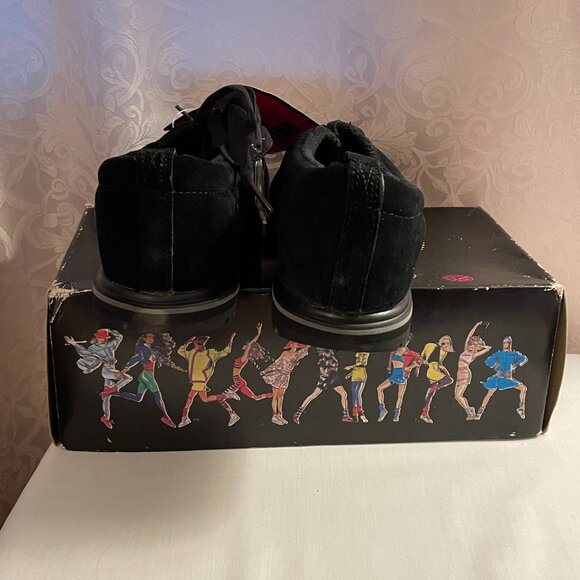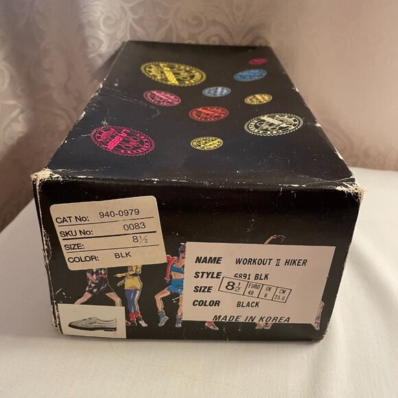 NIB Y2K L.A. Gear Workout II Hiker Suede Lace Up Sneakers-the Street Gear Collection with 2 pairs of laces, one pair of traditional black laces, and one pair of ribbon style laces. The box shows signs of age/wear, but the shoes are unworn. Hologram tag included. There is a bit of a glue line at the joining of the shoe and midsole.