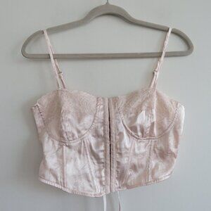 L.A. HEARTS Satin Floral Lace Up Corset Bustier Top - Size XS