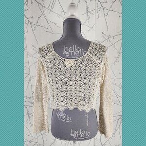 LA Hearts Ivory 100% Cotton Crochet Cropped Pullover
