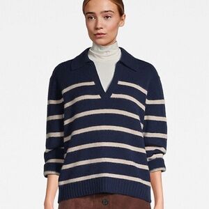 LA LIGNE 100% Cashmere Cream + Navy Collared Sweater XL