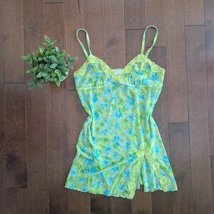 LA SENZA BRIGHT Y2K STYLE FLORAL SHEER SLIP DRESS