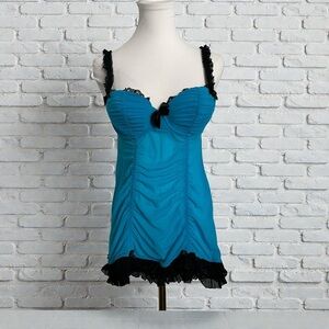 LA SENZA Black Satin Lace Cut-Out Babydoll Slip Nightgown Lingerie Size XS