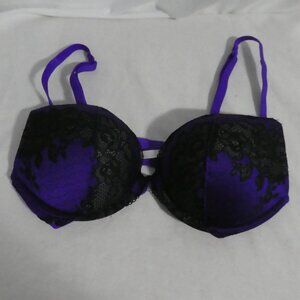 LA SENZA LINGERIE | 32 B | Purple and Black Lace Bra | Double Hook & Eye Fastened