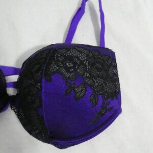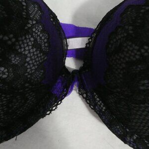 LA SENZA LINGERIE | 32 B | Purple and Black Lace Bra | Double Hook & Eye Fasten