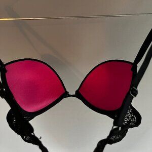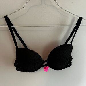 LA SENZA Remix pushup plunge bra Size 32B Black Lace Padded with Underwire