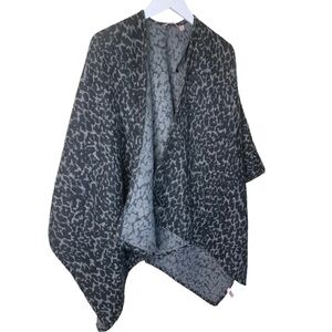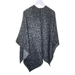 LA VIE EN ROSE Animal Print Open Front Poncho Cape Grey One Size