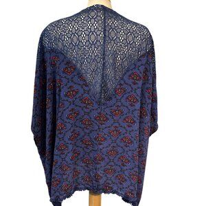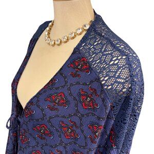 LA VIE EN ROSE Bathing Suit Coverup Blue Red Paisley Size S - M Tie Up Rayon
