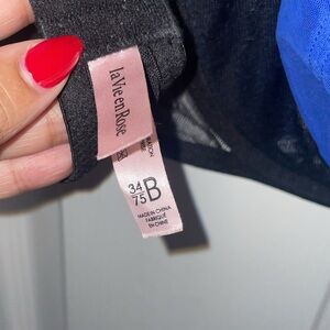 Preloved (used just once) LA VIE EN ROSE blue & black coloured bra with under wire, no padding, mesh and embroidered details, adjustable straps and hook backing. In perfect condition!