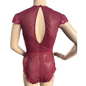 LA VIE EN ROSE One piece bodysuit / Lace & Mesh / Dark Pink / Size M