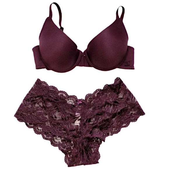 LA VIE EN ROSE Women's Rich Burgondy Bra (34C) & NWT! Unlined Lace Panty (M)