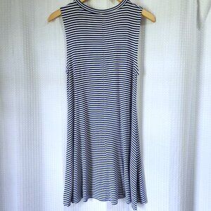 LA Vie en Rose Short Sleeveless Aqua Dress Size Med. Blue & White Stripes