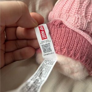 Adorable pink bunny plush toy by . Perfect for kids who love cuddly companions. Features a cute knitted outfit and charming details.