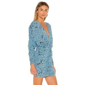 L'ACADEMIE The Nicoletta Ruched Blue Floral Mini Dress Sz Small