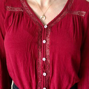 LACE BELL SLEEVE BUTTON UP BLOUSE