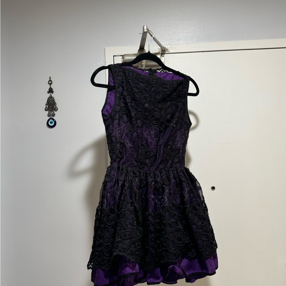 This elegant purple lace dress is perfect for any special occasion. The intricate lace detailing adds a touch of sophistication.