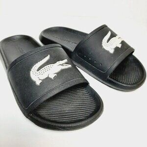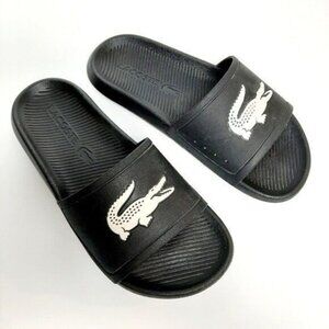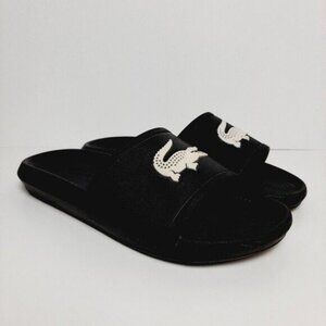 LACOSTE Croco Slide Sandals Lage Logo Black B&W Sz 6