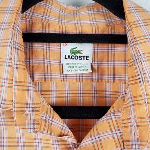LACOSTE | Long Sleeve Orange White Button Down Shirt Size L