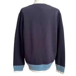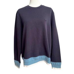 LACOSTE MEN'S NAVY DUSTY BLUE WHITE STRIPED CREWNECK LONG SLEEVE SWEATSHIRT - XL