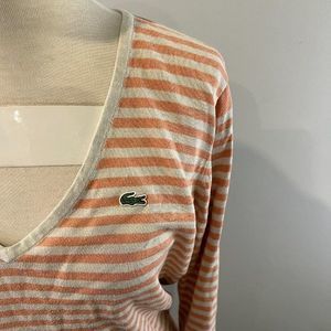 LACOSTE‎ Orange Cream Stripe V Neck Sweater (40)