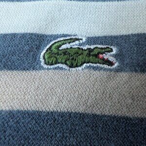 LACOSTE Polo Shirt Women's Sz 38 Top Short Sleeve Navy Blue White Striped Cotton