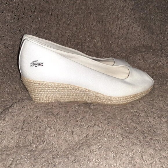 LACOSTE-Calavante-Cream Canvas-Wedge Espadrilles-Peep Toe-Sz 10-NWOB