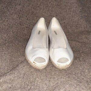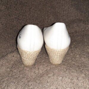 Off-White/Cream Wedge espadrilles with a 2.25" heel with a .75" platform.