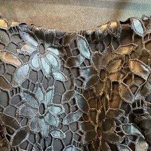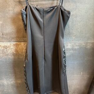 LADIES BLACK FAUX LEATHER LACE COCKTAIL EVENING DRESS SIZE MEDIUM
