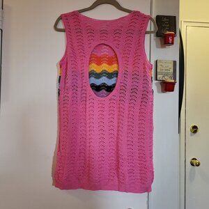 KNITTED PINK , WITH MULITCOLOR ACROSS THE FRONT, OPEN AT THE BACK