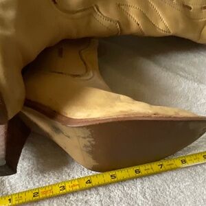 LADIES COWBOY BOOTS ‘’MADE IN ROMANIA ‘’ SIZE 7.5 .. LEATHER CREAM COLOR . WITH GOLD COLOR