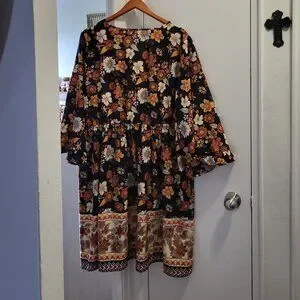 FLORAL LONG SLEEVES KNEE LENGTH . COOL MATERIAL