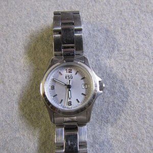 LADIES ESQUIRE WRISTWATCH. GOOD WORKING CONDITION. DATE WINDOW. SWEEP SECOND HAND. A FEW SCRATCHES TO THE STRAP BUT WATCH AND CASE ARE VERY GOOD. FITS A 7 INCH WRIST.