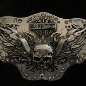 A very eye catching ladies silver Harley Davidson belt buckle. Really cute dressed up, or just in your sexy casual.