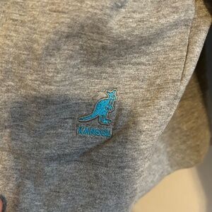 Kangol zip up grey hoodie with blue logo. Size XX Large