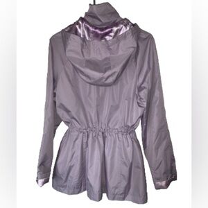 Lavender spring jacket by Dennis Basso. Beautiful satin-like lining, zip and snap closure, 2 side slit pockets, detachable hood and toggle-cinch waist. Size Medium. New without tags.
