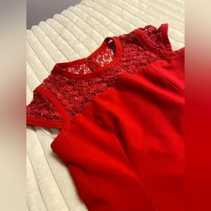 Beautiful red ladies dress. Perfect for any occasion. Can be worn all year round. Beautiful cap sleeves. Pair with a pair of ankle or long boots for a perfect outfit. Jessica brand. Size:10 (petite)
