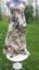 This sleeveless sundress features a vibrant green and red floral pattern on a cream background, perfect for casual resort wear.